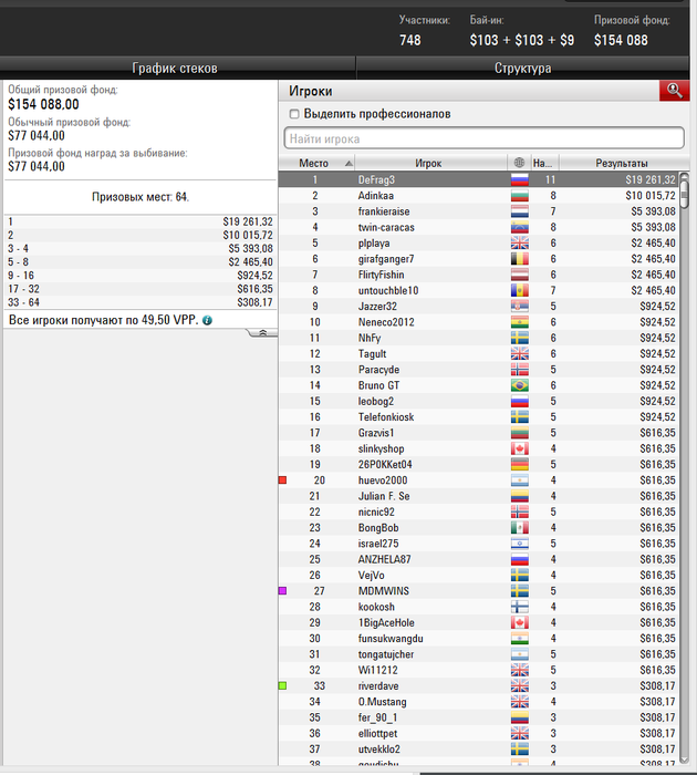 Ещё повезло, что играли уже долго и агрессивно, много впп накапало (размер бонуса от них зависит). Я сначала выиграл 2 би, потом долго туда-сюда, затем он буквально за 5 минут все своё отыграл и еще около 3 моих би сверху