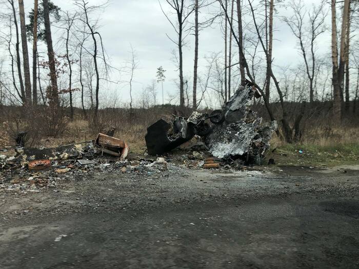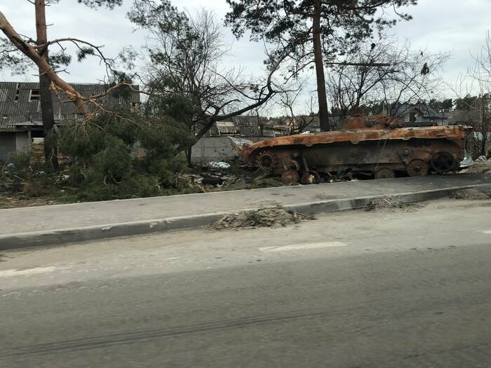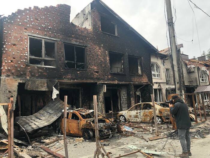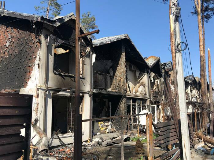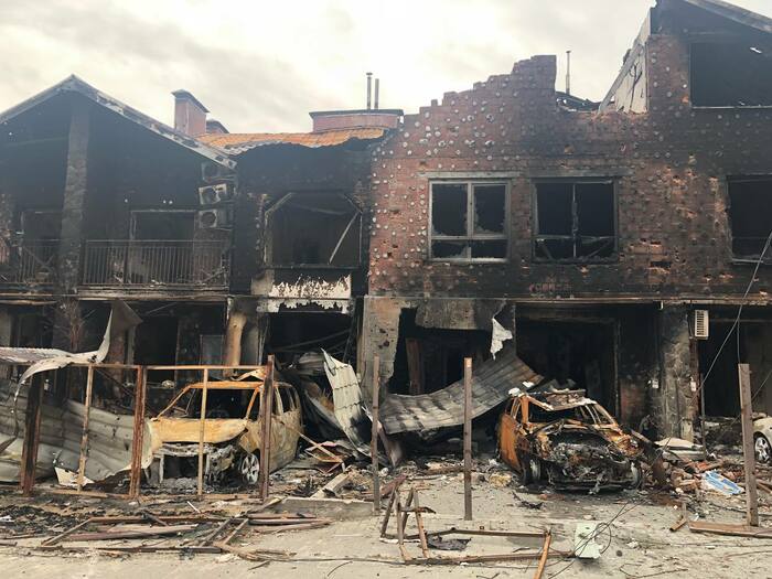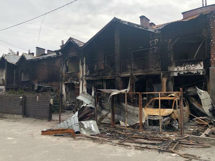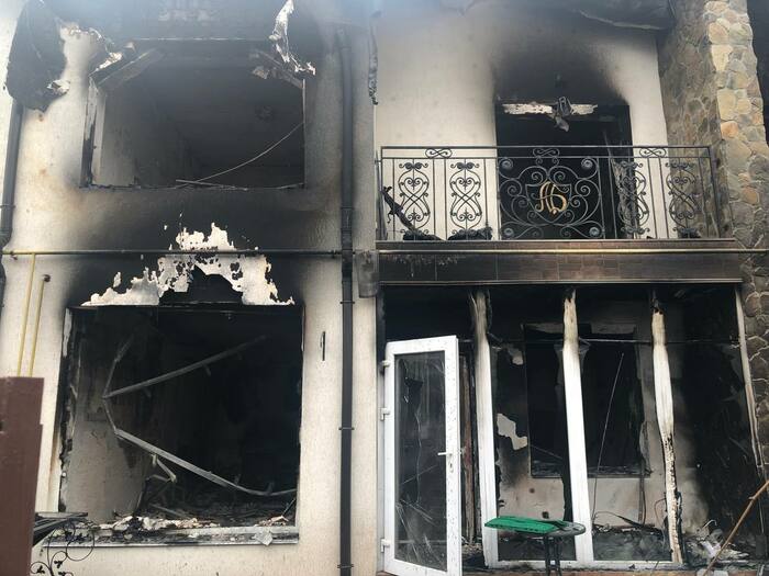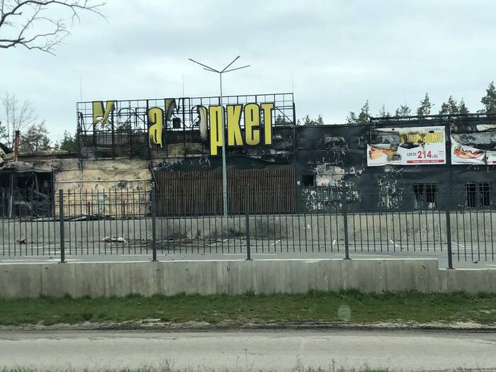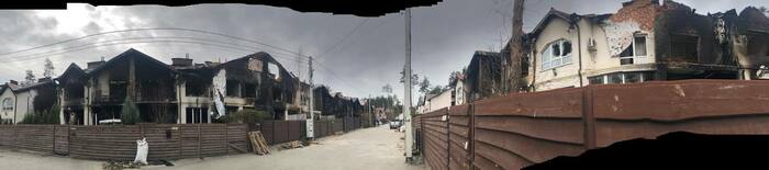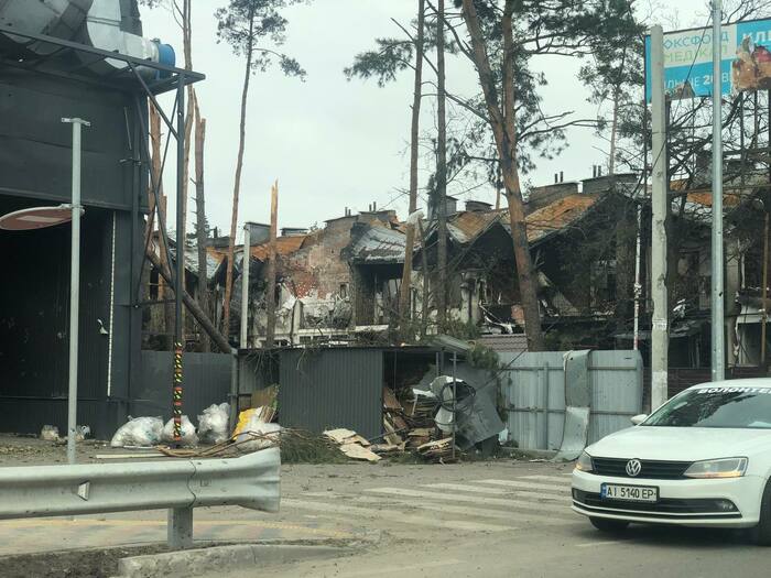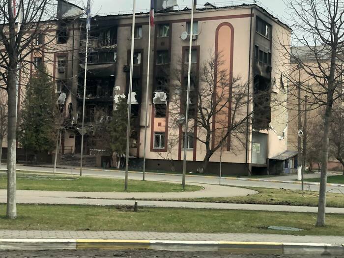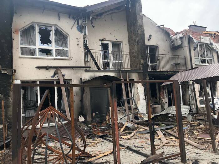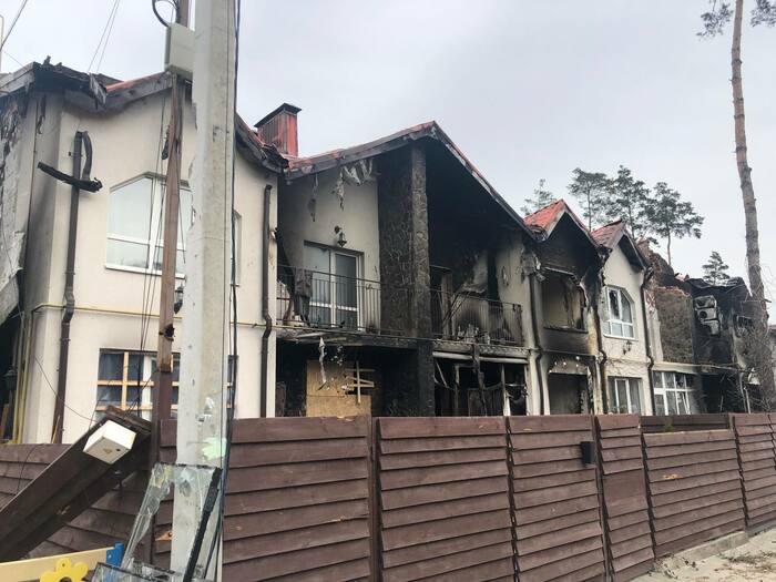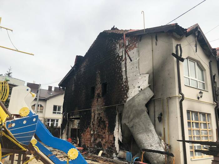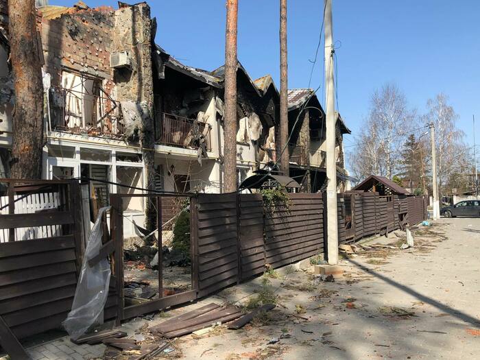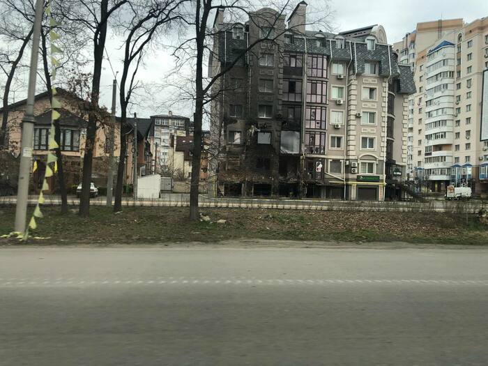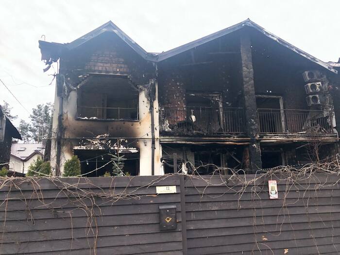 Дом сразу напротив нашего дома который мы снимали . Со слов другого соседа который там был до конца что под этим домом пряталась русская артиллерия, по этому и прилетело скорее всего от наших. Но это уже было после 11 числа когда большинство эвакуировалось.