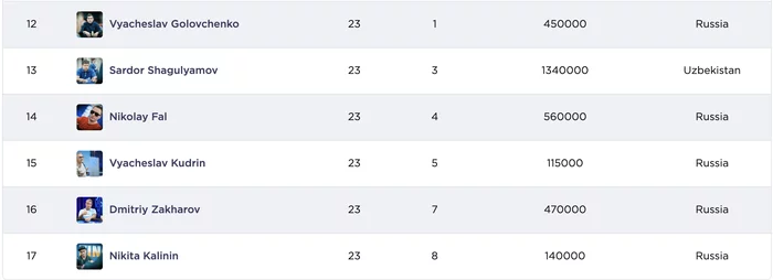 10. Вячеслав Головченко — 455,000 (23 bb)