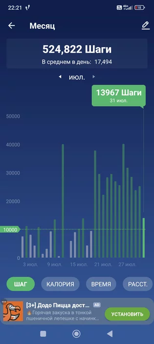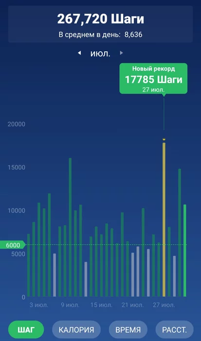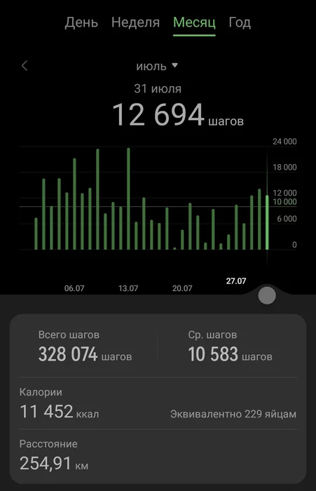 P.S. там 11 июля высокий столбик, это не нахоженные шаги, а руками вбил компенсацию за кривую синхронизацию (телефон в середине месяца поменял)