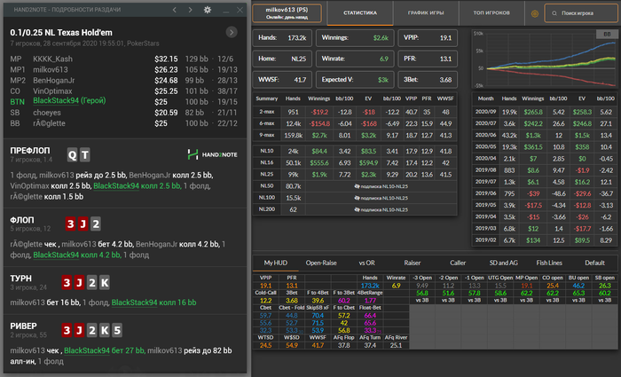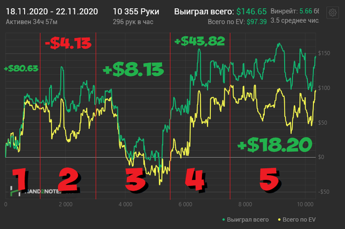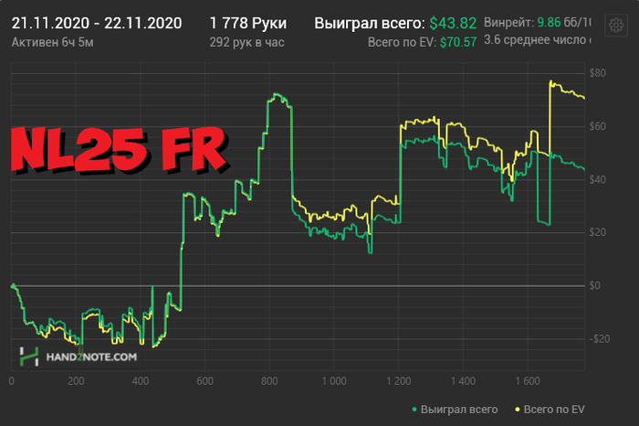 На графике видно, как в конце меня шатало до 2-3 стека то вверх, то вниз. В тот момент по часам я уже все отстримил, и формально все условия были выполнены. Я завершил стрим и откатал сверху еще час, выиграв пару БИ. Нет, вы представляете? Я откатал и отстримил столько, сколько нужно, но отыграл еще час, чтобы не закончить хоть эту вакханалию в минус. Мне реально страшно представить, что могло случиться, если бы я в тот момент не выиграл несколько БИ, а проиграл (а это запросто). Нет, БР я бы не залил и на NL50 бы не пошел, но был чуть ли не на грани истерики, когда ты оказываешь в беспомощном состоянии, ты ничего не можешь сделать, чтобы остановить это падение. Тебе остается только терпеть, а вот эта самая беспомощность и вызывает самые негативные чувства. Хотя всегда есть выход - выход из игры, например, нет?