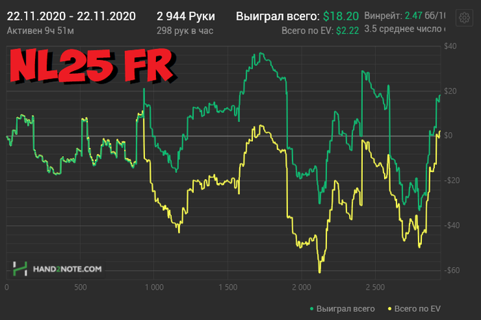 Weno @ 18.11.2020 Итого 28 часов. Что-то мало катаешь в последнее время, предлагаю ставочку, дабы мотивации было больше. Игра на стриме ФР НЛ25 4 стола в период с 18.11.2020 6:00 по 23.11.2020 6:00 часовой пояс мск, в случае если по х2н не будет 28 часов(или меньше 8к рук) жду перевода $25, если в итоговом скрине есть 28 часов и 8к рук, то от меня перевод $10. По мне дак лёгкие $10 для стримера