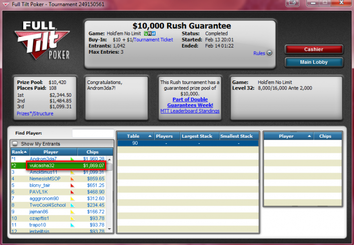 Перерыв пошел на пользу)) Поделили в топ3, у меня был самый короткий стек, но получил больше чем за 2-е, так что думаю норм. Еще была финалка по 24, но там 9-ым ушел (