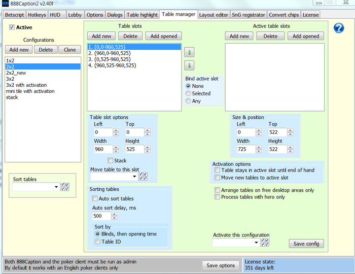Привет. У меня такая проблема с 888 капшн. При ручном указании размеров стола, программа не реагирует на высоту размера стола. Ширина ставится по размеру, а высота получается порядком больше. У меня монитор 1920х1080. Хочу сделать 4 стола на весь монитор размерами 960длина и 525 высота.Длина срабатывает,высота нет,что бы я не делал. В Предыдущей версии все работало, в V2 нет. У меня лицензия. Скрины настроек и монитора со столами прилагаются. Помогите плиз.