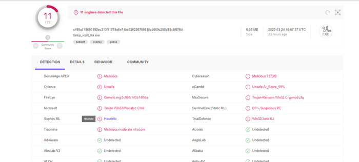 Стяжатель @ 25.3.2020 Вирус тотал выдаёт на инстальник последней версии полную жесть: 11\70.