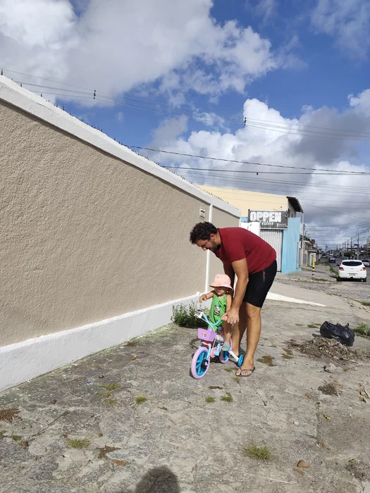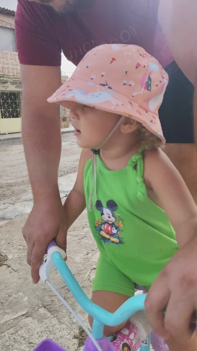 потихоньку учимся кататься на велике