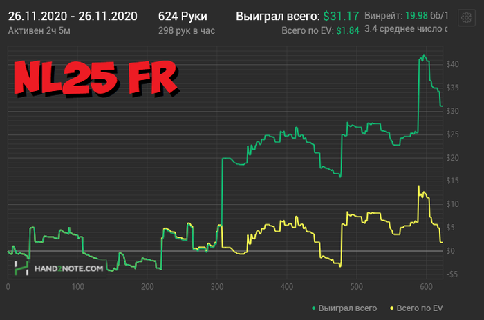 Сегодня удалось оформить бэст-дей на NL25. Да и вообще за все время игры это наиболее профитная сессия как по EV, так и по $. Диспа сегодня благоволила и давала. Но основное сделал один УЛЬТРАВИП, каких еще поискать надо!