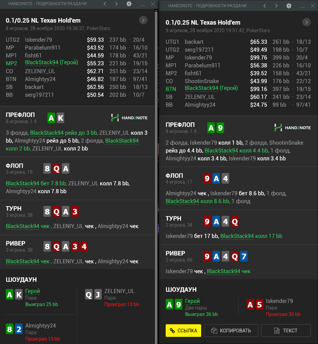 ⦁ АНАЛИЗ ВО ФЗ Разобрал вчерашние раздачи ---- Завтра, скорее всего, я откатаю последний день ноября, и вероятно я катну по фану какую-нибудь лесенку с NL2, замажусь в 6+ или сыграю какой-нибудь турик. В общем, NL25 завтра не будет.
