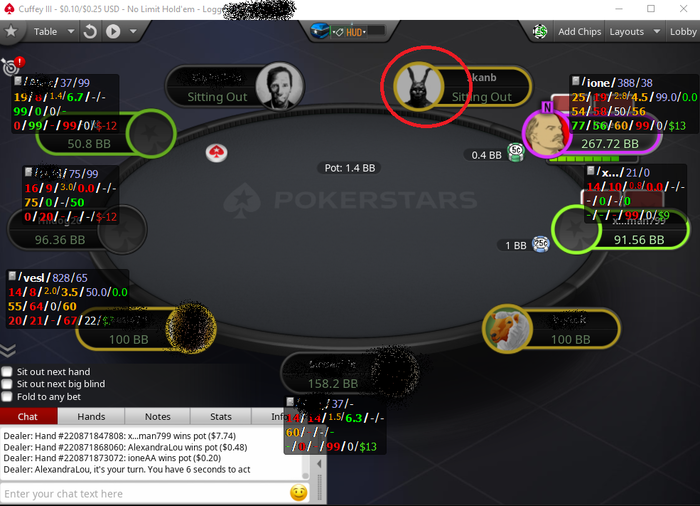 Ладно, теперь про покер. Начал просто великолепно, первые два часа играл просто на высоте, но и заходило очень хорошо! Уже думал заканчивать, почти докатав два часа, сталкиваюсь с подставой