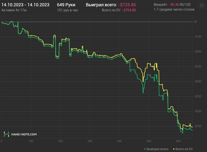 Я просто не вижу на этих вытянутых вертикально столах, что там происходит на утг + к утру уже концентрацию держать супер сложно. В итоге вместо сквиза дал 3бет. Хз, что изменилось бы, если бы дал сквиз, но мне в моменте так обидно было из-за этой дилетантской ошибки. Короче, со всеми этими переездами я в покерном плане стал мягкий как дерьмо. Сессии длинные катать тяжело, на теорию собраться тяжело, еще и удар держать перестал. Короче, мусор, а не игрок. В покерном плане я полугодичной давности смотрел бы на себя сегодняшнего с презрением