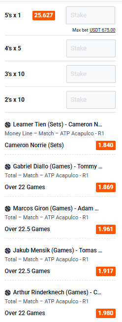 Botic Van de Zandschulp - Francisco Cerundolo Over 22.5 Games 1.980 2би