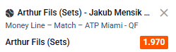 Alejandro Tabilo - Taylor Fritz Under 22 Games 1.800 1би