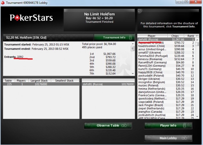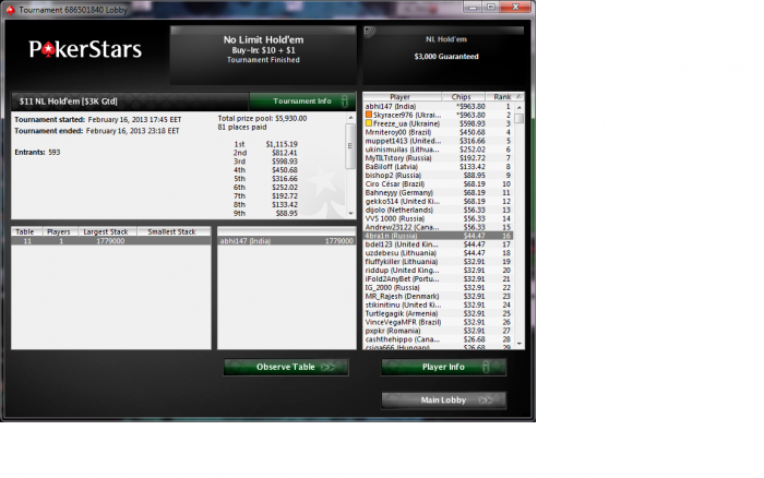 чемпионат форумов пока не складывается, но первый недозанос на редстаре не заставил себя долго ждать немного оффтоп, но отобрался через сателлит, так что теоретически это можно назвать до 20 (=