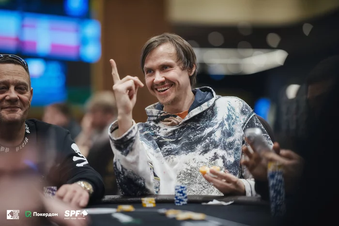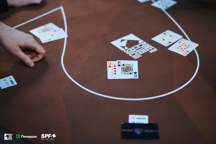 Нашел нужные ауты Вячеслав Кардаш и получил большое удвоение. Гарик Тамасян остался с коротким стеком.