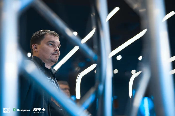 В хедз-апе Роман Дегальцев с попал в топ-пару на флопе и увернулся от аутов Сергея Кузнецова с . Терн и ривер усилили обоих до фулл-хауса, но был нюанс.
