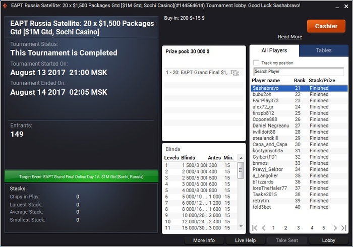 Не сложился у меня чемпионат по 66к вылетел в первый день АА в 29, но вечером сыграл покерстарс кап за 20к и прошел во второй день, Уже в призах, продолжение будет уже через час.