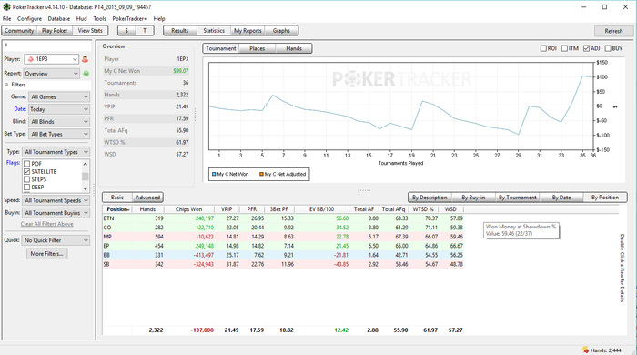 SB: 20.32 BB (VPIP: 15.56, PFR: 11.36, 3Bet Preflop: 5.56, Hands: 93)