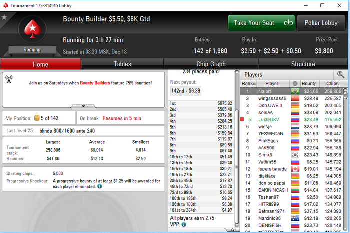 RodriGoPunch @ 18.12.2016 Утро, такое утро! залился к ебеням!) хотя вообще не нужно это было делать( шел -25$, черт меня дернул в омаху пойти кэш, слил под ноль все, и остался один турнир, который должен был стартануть,это 5.5 билдер. И сейчас вот такой расклад в этом турнире, хз как, но надо заносить