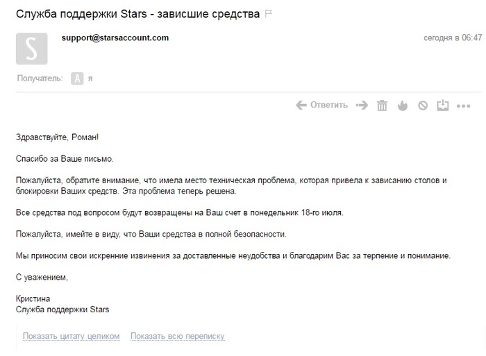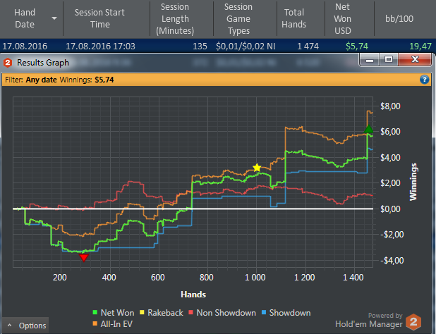 Сегодня, на дачу не поехал, устроил "день семьи", сходили в парк динозавров, зоопарк, покатались на лошадях, мороженого наелись, в общем все счастливы Но тут нарисовался какой то пипец,.... В пятницу, ну график вверху висит и еще один, я сюда не забрасывал, тоже пятничный, продолжил сессию. По итогу, тоже плюсанул и общий выигрыш был около 5$+-, сумасшедшие деньги,Закрываю столы, собираюсь домой, пт ведь все дела, замечаю такую херню, деньги в кассе, которые на столах были, висят в строке in play и в строчку total почему то не перечисляются. Смотрю через 10 мин. та же фигня, закрываю клиент, открываю, ноль реакции. Делаю скриншот и уезжаю из офиса. И вот сегодня, думаю надо полудоманить, открываю кассу, а тут пиздец, все, что в пт поднял, хрен зачислилось в общую сумму, в строке in play соответственно тоже пусто, только общая сумма, но без 5$. В сапорт написал, жду ответ, жалко, что не могу им скриншот сразу же прислать, только в понедельник, когда в офис приеду.