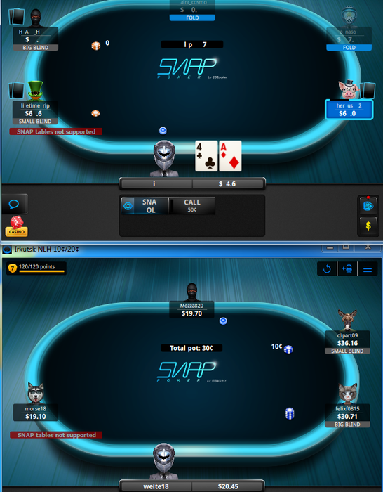 начал катать на 888, но такая хрень иногда появляется никто не сталкивался? если закрыть стол и открыть заново, то всё норм. В снепе нет проблем, можно закрыть стол и открыть заново, но рег столы невозможно подключать из-за этого. такое происходит и в снепе, и в рег столах, и в мтт жду ответа от саппорта