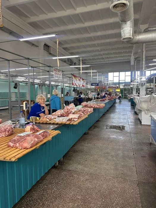 Что интересно, как оч давно были разделены ряды, так и до сих пор осталось. Ниже на фото ряд - всегда было боязно ходить, а вместе с тем любопытно, потому что мясной. То тушка висит, то череп лежит :) Мясным он и остался, но заметно оскудел