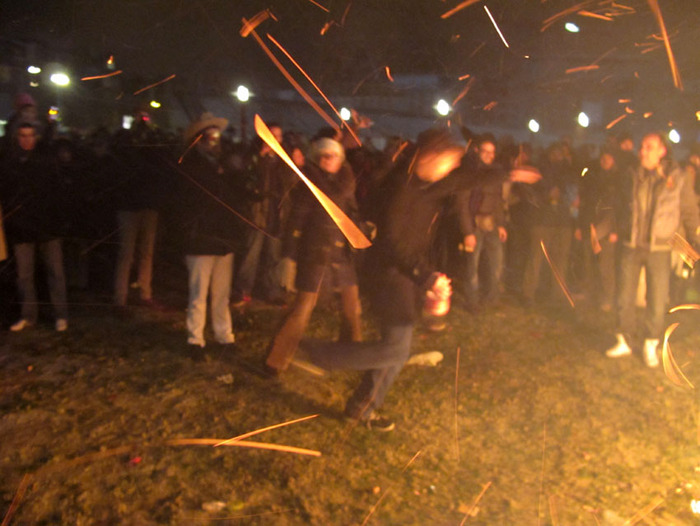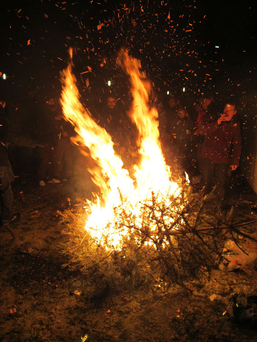 Новый год мы отмечали на музейной площади. Там была площадка и что-то пели, может даже какие знаменитости. Но была очень большая толпа и к тому же нас не пустили с бутылкой вина и термосом. Ну и ладно. Нас таких было много и за воротами. Кто-то зажег елку и мы устроили шаманско-языческие пляски вокруг неё. Счастье длилось не долго, прибежали два суровых классических голландца и быстро всё потушили.
