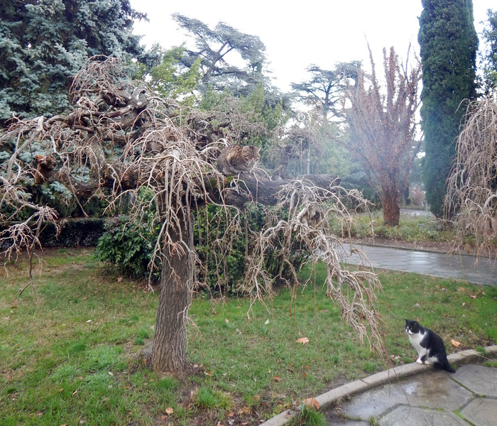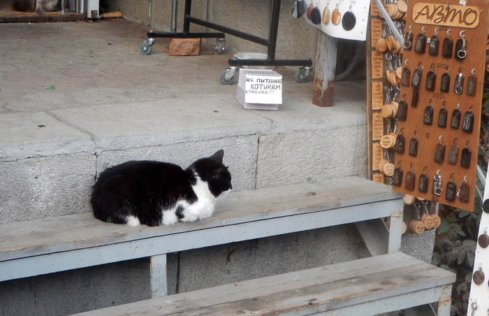 Если Краснодар – собачкина столица, то Ялта, безусловно, центр кошачьего сообщества. Коты здесь везде. Особенно позабавило на этом фоне объявление о пропаже котика (непородистого). Вот сколько котиков на этом фото? Неправильно: