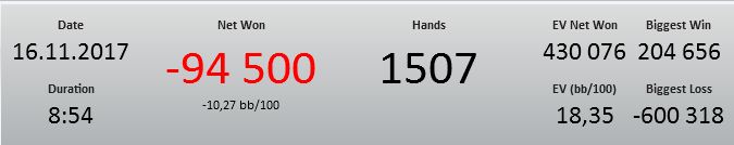 сегодня решил не играть, но перед сном сильно захотелось пришлось подлудить в экспрессо по 2е на винамаксе (аналог спинов) открывал 6 столов одновременно и так после 3-х заходов (18 турниров) выпадали только одни х2. 18 мать вашу из 18 одни минималки х2 !!! это что блеать такое ??? так ещё по мимо минималки я всасывал по полной. По окончанию 18 туров моя ЕВ была +11бб/100, по факту -90 и выиграл всего 2 турнира. Я подумал что так быть не должно и это просто за гранью дисперсии, ну и конечно же продолжил. А ещё подумал что множители х2 просрал ну и хер с ними, зато сейчас крупные втащу, я же оптимист В следующие 6 столов выпал множитель х6 и я его выиграл, а в следующем заходе выпал множитель х10 его я тоже выиграл, ну и последний заходик тоже чутка плюсанул. итог +4е вот картина всего происходящего.