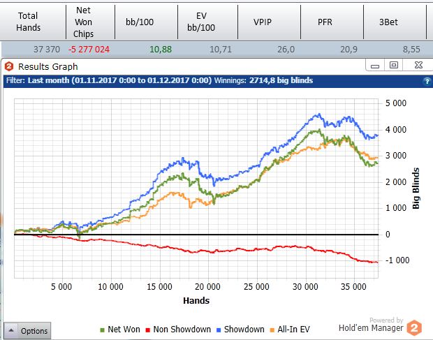 ещё был вылет на бабле финалки за 4,4, говорят не правильно сыграл, но я почему-то ошибку не признаю хотя всё же стоит согласиться что на чек/рейз надо было выкинуть играл против рега аби 5, профит за последний год +11к, рои +41% . впип28/пфр19/3бет 7,7 , агр.2,0