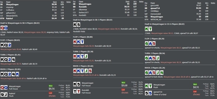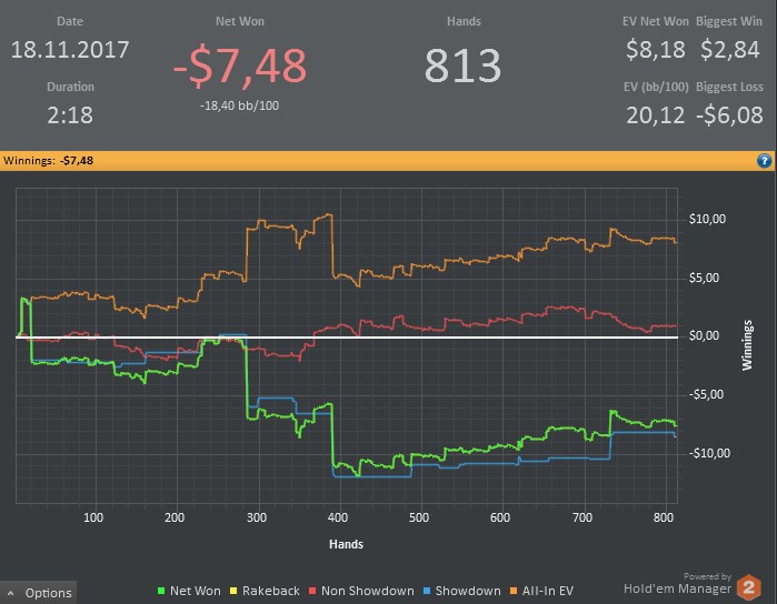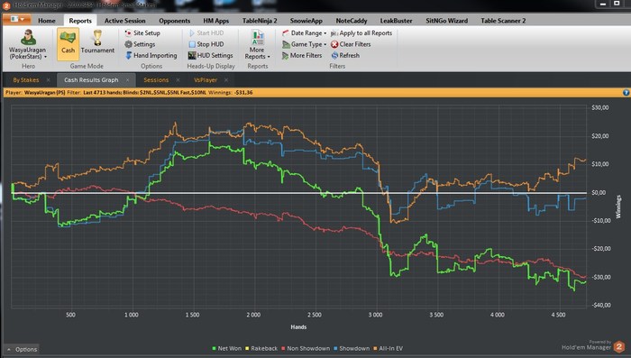 И я играя столы с 2-4 фишами за столом нл2 катаю 20к рук в минус, правда солидно недобирая. Примерно вспомнив куда тыкать, пошел на свой нл5, подключая нл10