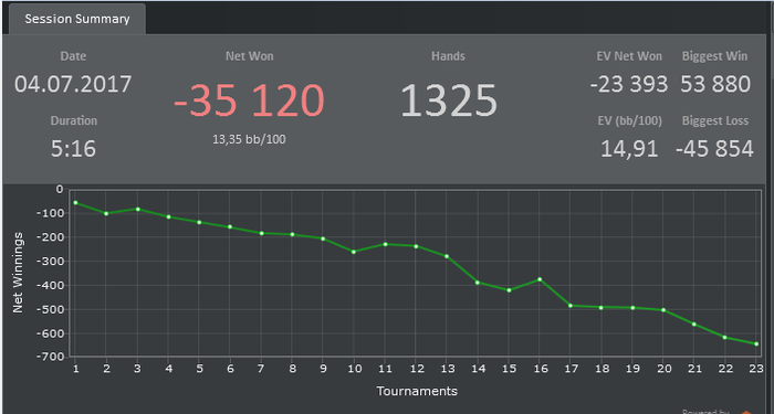 А ещё, последние 3-4(2 так точно точно) месяца я почти не думал о деньгах. Как-то казалось, что их достаточно много, чтоб вовсе о них не переживать. Нет, я не разбрасывался ими направо-налево, не покупал дорогих вещей или ещё что-то в таком духе. Я просто о них не думал Играл дороговато конечно, это да, когда садишься играть раз в неделю, тебе не хочется играть гриндом мелкую поебень - хочется сыграть всё самое лучшее -расслабился, понадеялся на хороший ран, брм-сраспиздяйничал, несколько раз даже залудоманил спины 60-100 на пати, но всё это были контролируемые риски: я понимал что у меня есть ещё прочный запас,и что больше определённой суммый 1-2к проиграть я не смогу (т.к на акках больше не держу) и даже если сегодня "нет" - ничего ужасного не произойдет Но десять раз ничего ужасного - привели к тому, что отметка перешла критическую черту и в моём мозгу сегодня утром, как будто врубилась красная кнопка ALAAAARMA ALAAARMA ALARMAAA - Пора этой хуйнёй завязывать. И как бы мне не хотелось поиграть саты на 500, на 1к и на ебучий мейнэвент (Вот чуть не удалил это, чуть не стёр, лудик грёбаный) - НЕТ.