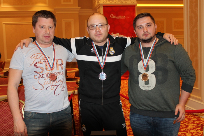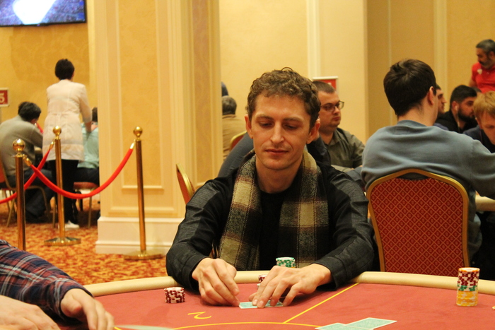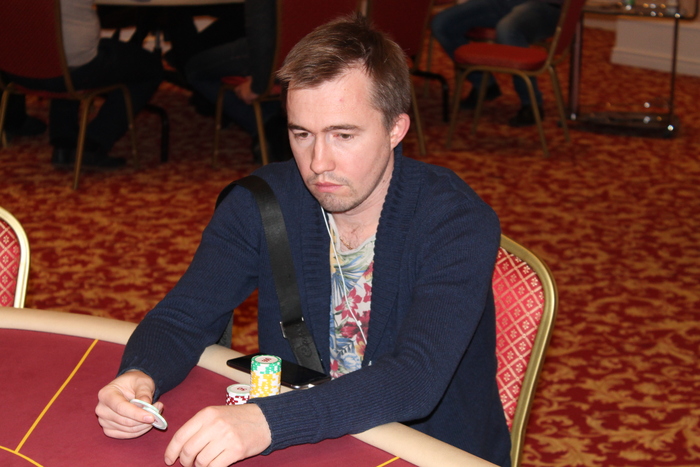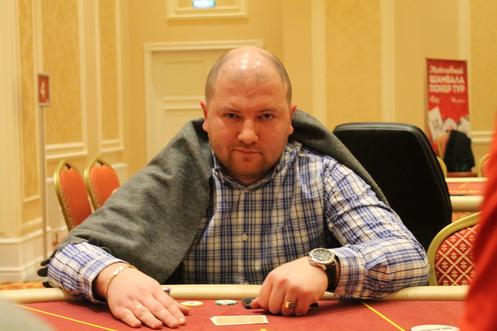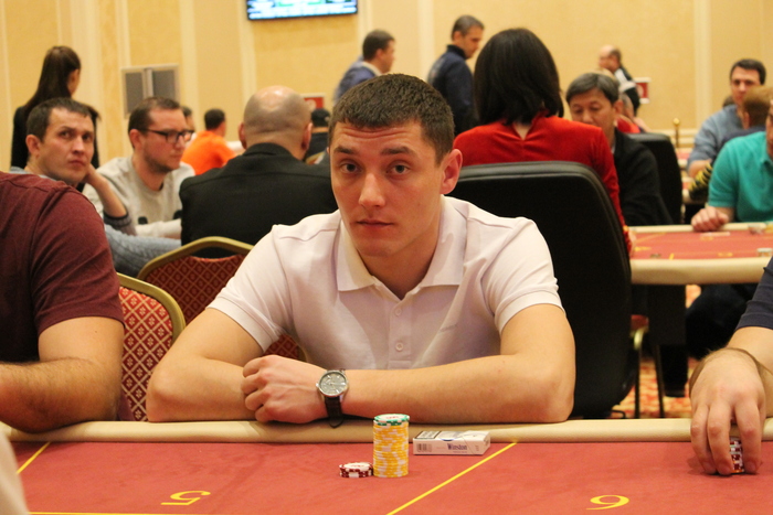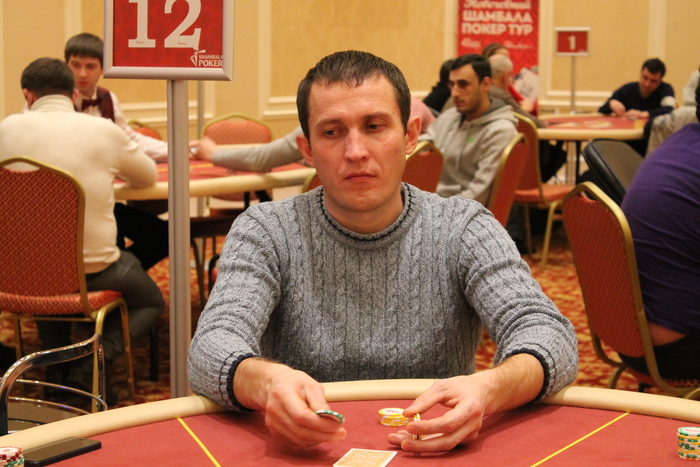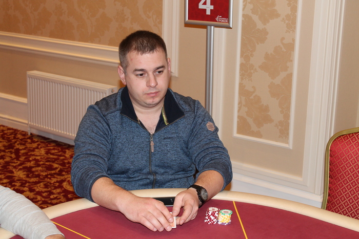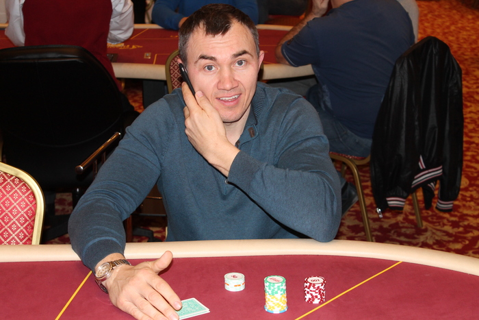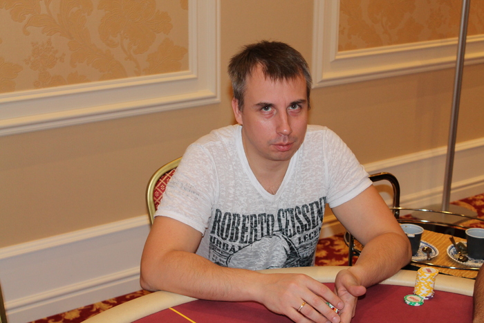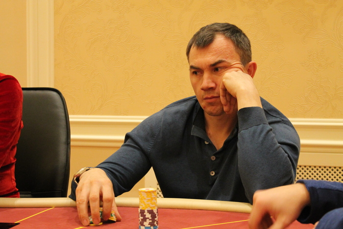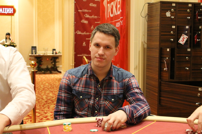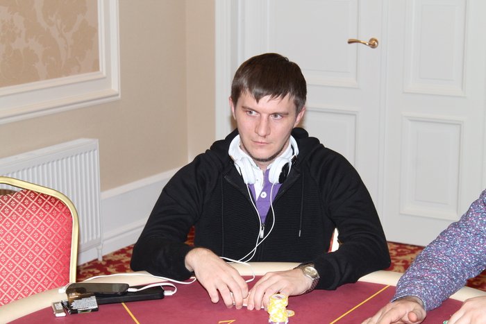 Интересная раздача, Тимофей Кныш, после нескольких неудачных раздач выставил алл-ин 31К, Артур Адамянц колл на батоне 31К, Роман Нураев колл на МБ 31К, Максим Журавлев, очень хотел остаться вдвоем, банк собрался 110К и поставил алл-ин 400К, 2 паса, Тимофей перевернул , Максим , флоп , терн , ривер