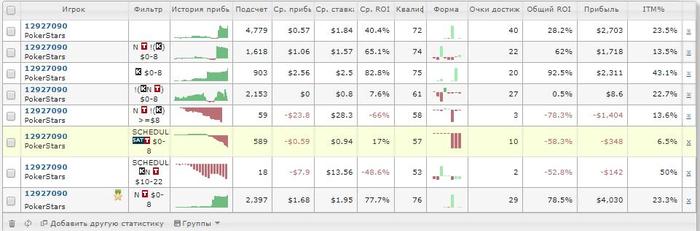 Фильтр по регулярным турнирам (нормальные и турбины) больше 8$.