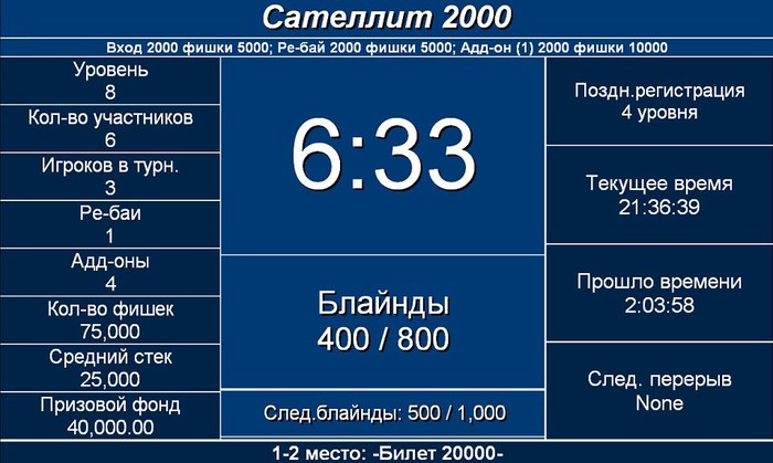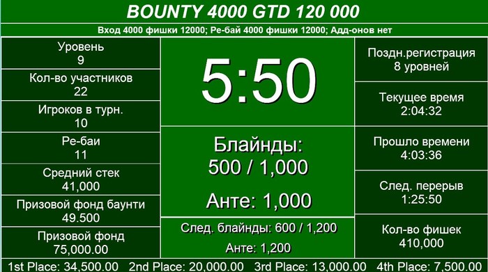 Баббл-бой Мецрицян Овик A5<99 4 место 20000 Демяник Сергей 33<A7, на борде 77 3 место 34000 Голото Дмитрий AJ<А9 у Захарченко. 9 ривером 2 место 54000 Анохин Кирилл 1 место 92000 Захарченко Артем