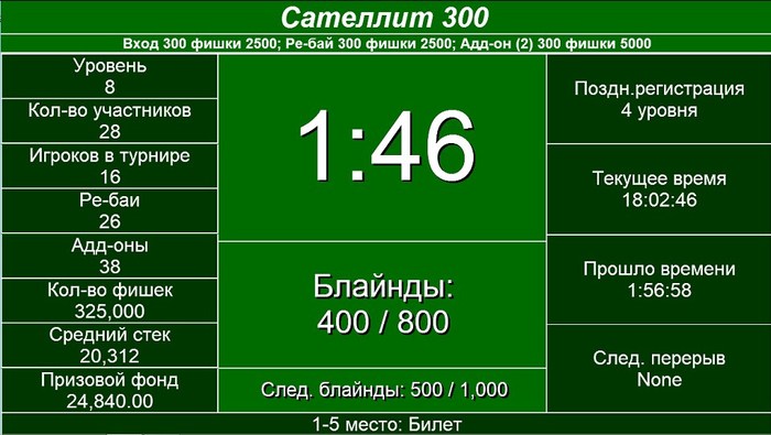 В сателлите разыграли 5 билетов