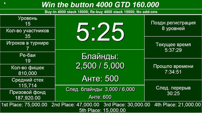 5 место 15000 - Селиванов Дмитрий 4 место 21000 - Югай Елена 3 место 30000 - Мещенинец Николай На двоих поделили по 61000 Алиев Дашгын и Соловьев Андрей (на фото)