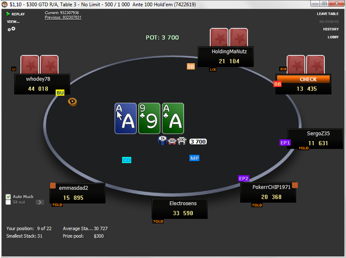 Турн: ($9.45) A(2 игроков, 1 all-in)