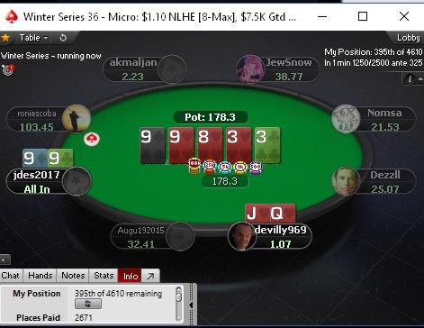 3. На агрессивной волне по ТП порейзил микроконтбет, тем более пика бэкдорная есть на доске.Тёрн чек, потконтролим, ещё более размываем диапазон. Ну а ривер после чека только пуш. Здесь СТОЛЬКО недоездов, что так и чешется рука вскрыть без позы.