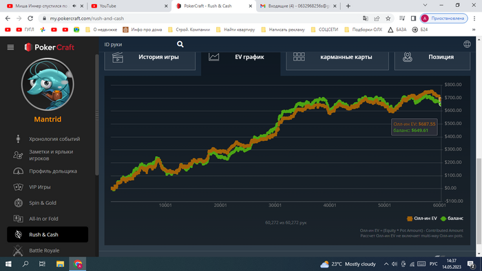 Немного перепутал, видимо не тот график. Вот у меня скрин остался с разбора базы. Здесь катал исключительно на профит 3 стола раш покера.