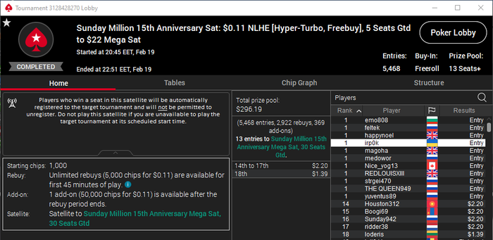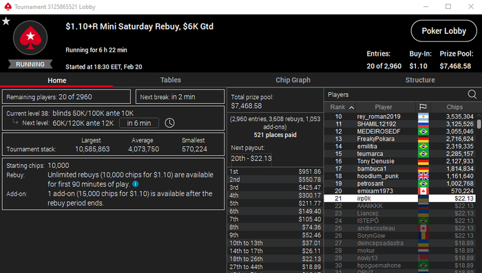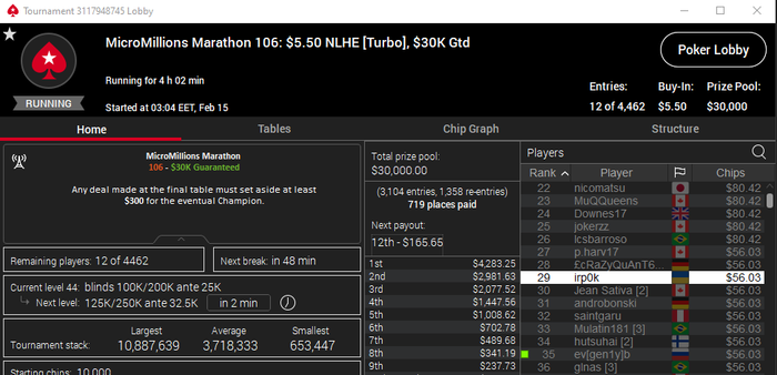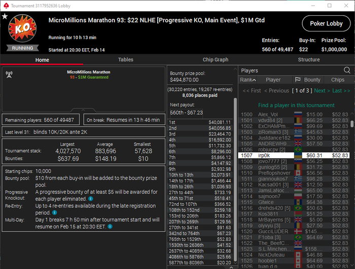 Марафоним С первого раза отобрался на $22(так то саты не играю) Аминь Почти завершив 8+ часовую сессию скринами выше увидел что 4 последних турнира сессии сильно не перебивают гарантию. БР уже был $300+ Cквозь сон и слёзи зарегал БИ $1.10 $1.10 $3.30 $5.50 Призы $9.40 $11.32 $56.03 = $76.78