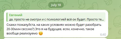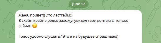 Я отвечаю ему, и со временем делюсь ссылкой на телеграм, поэтому дальше переписка будем происходить там.