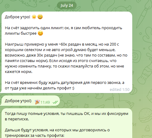 Как мы договорились тренировать за профит