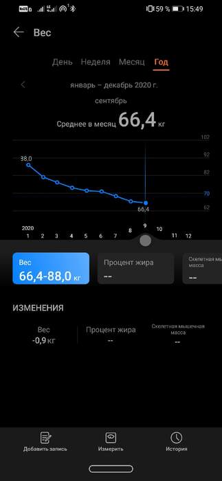 Весы показывают цифру все меньше и меньше: (график на протяжении 8 месяцев 2020 года)