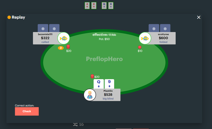 В истории ошибок можно воспроизвести раздачу в реплеере и посмотреть чарт с правильными действиями