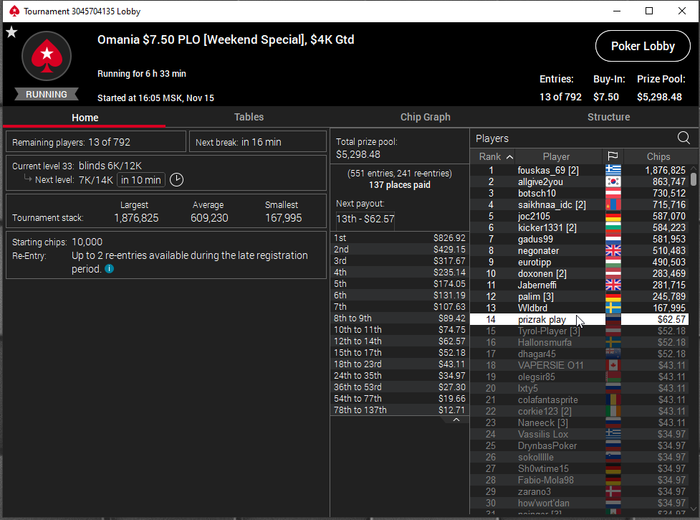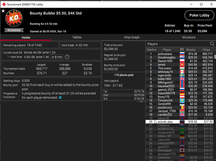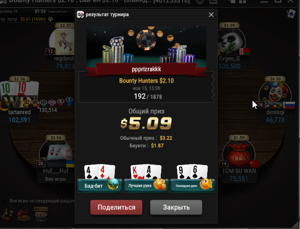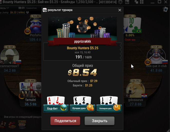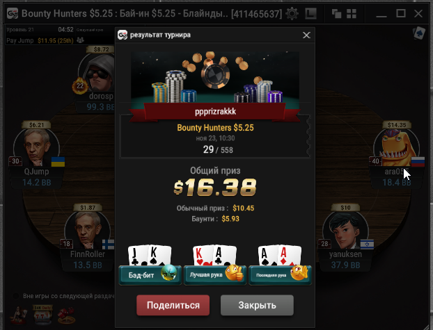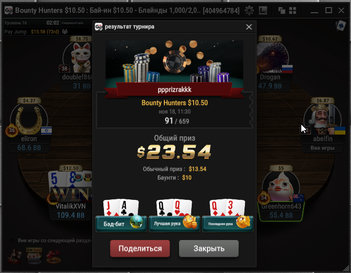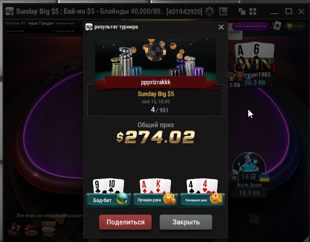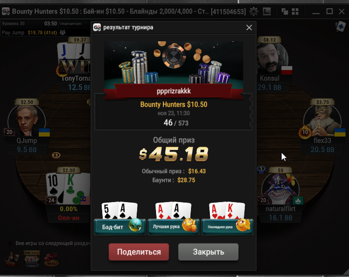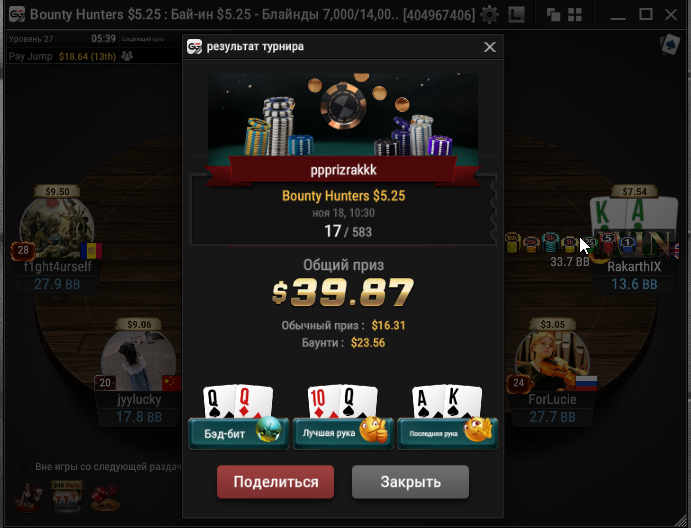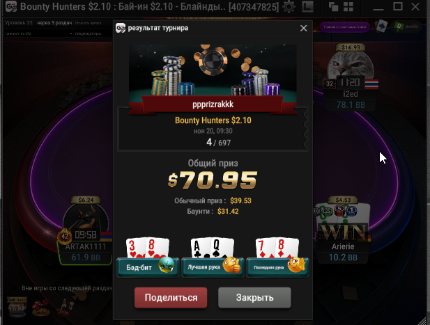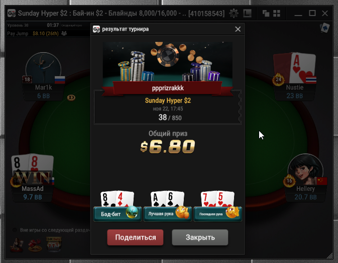 Taskedy, Спасибо. Просто на апстрике пока) Тренеров не нанимал, к такой игре пришел сам, разработал свою стратегию. А так смотрю стримы, разбираю раздачи и турниры в icmizer 3.