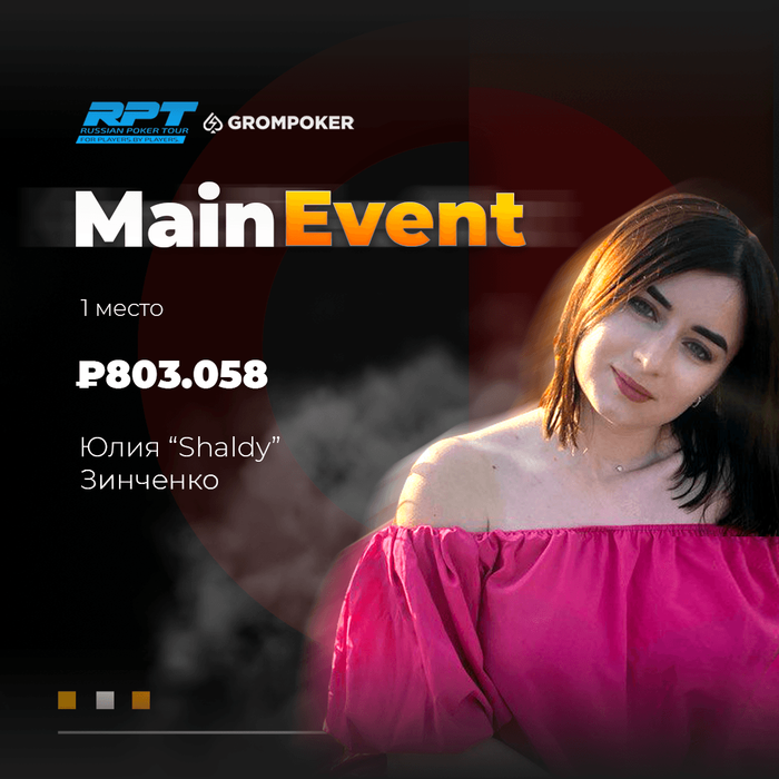 💥 Юлия «Shaldy» Зинченко - чемпионка Главного События RPT Online 💥 ⠀ 🏆 Друзья, все мы привыкли видеть в кресле победителя мужчину. Но не в этот раз! Кто бы мог подумать, что первый в истории онлайн Main Event RPT покорится прекрасной девушке? ⠀ 💪🏻 Множество игроков пробрались в Мэйн через оверлейные сателлиты на Grompoker, и наша героиня одна из них. С успехом реализовав свой шанс в отборочном турнире, Юлия одолела поляну из сотен игроков и одержала победу в Главном турнире серии, пополнив свой банкролл на сумму 💰более 800,000 рублей. Наши поздравления! ⠀ Мы связались, поболтали и поздравили новоиспеченную чемпионку RPT. Итак, Юлия «Shaldy» Зинченко о своей игре, девушках в покере, вкусе победы и планах на выигрыш 👇 ⠀ 🍀 О себе и покере в жизни ⠀ Меня зовут Юлия, мне 28 лет и я живу в Крыму, в городе Керчь. Работаю бухгалтером, люблю путешествия и активный отдых. ⠀ Покер в моей жизни появился сравнительно недавно, года 2 назад. Мои хорошие знакомые пригласили однажды поиграть в домашнем кругу. Со временем, понемногу наш круг разросся и с каждым разом интерес к игре все возрастал, ну и безусловно дополнительный азарт - победить парней =) Свободное время старалась посвящать просмотру учебных видео, серий, статей и обзоров, да и постепенно уровень нашей компании заметно подрос. ⠀ Примерно с пол года назад начала пробовать себя и в онлайне (хотя это громко сказано). Грандиозных результатов не было, не считая пару финалок за 5$ и парочку заходов в ITM. Несколько раз удавалось отдираться на более крупные турниры, но не более того. Чувствовалось, что уровень игры еще следует оттачивать и совершенствовать, чем я и стараюсь заниматься сейчас. ⠀ А тут вдруг узнаю в своём комьюнити, что на Grompoker в самом разгаре идет серия RPT. ⠀