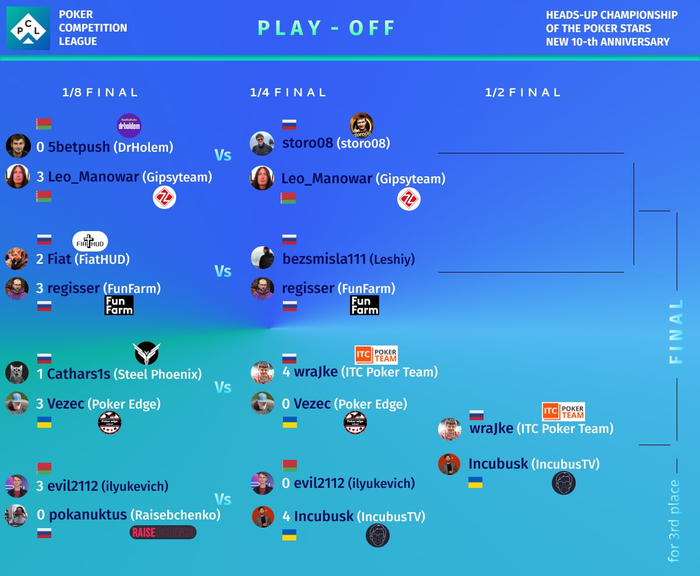 Несколько, удивительный и примечательный факт - в 1/2 финала, т.е. в состав четверых полуфиналистов вошли, исключительно, сильнейшие игроки, достаточно, продолжительного группового раунда, который состоял из 6-ти туров. В этом что-то есть, логическое и заслуженное, а именно то, что подчеркивает класс данных игроков в игре 1 на 1. При этом, я ничем не принижаю уровень игры в Heads-Up в глубоких стеках других игроков, но для меня данный факт остается фактом и нас ожидают решающие, супер-интересные баталии.