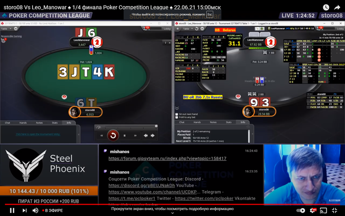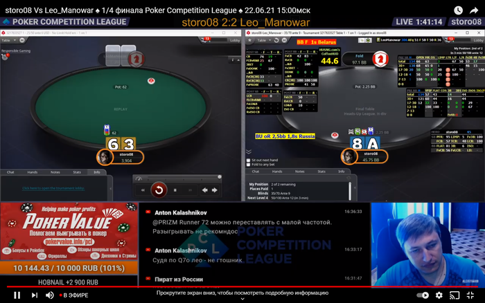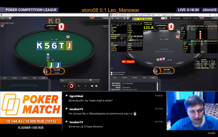 Ну, а пока можем вспомнить из обзора о том, как Leo_Manowar прошел 1/8 финала, где он встречался с топ-стримером 5betpush (DrHoldem)