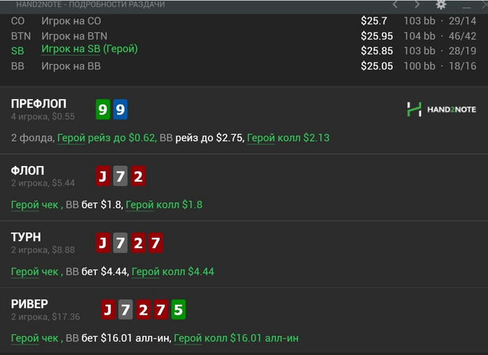 Оппонент один из хороших регов nl 25, 3bet у него ~15.