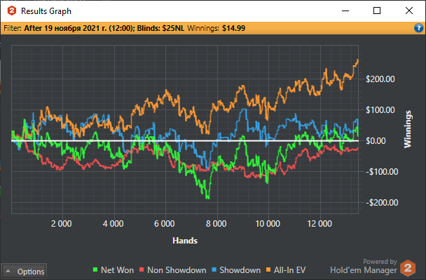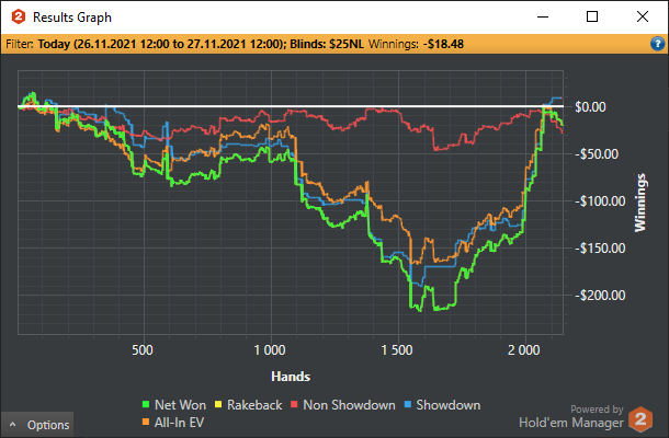 BSOD094 @ 27.11.21В этом моя проблема, я измеряю покер отрезками. Сессия, выходные, неделя, месяц. И если что-то идёт не по плану к концу "отрезка", то мозг начинает тильтовать.